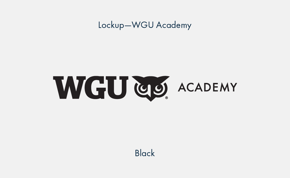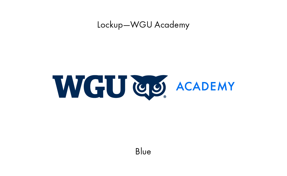 A lockup is a combination of the WGU logo with a school or entity name. These lockups are reserved for school and entity use only and cannot be edited or customized beyond sizing. For visibility, lockup font size should never be smaller than 10 pt.